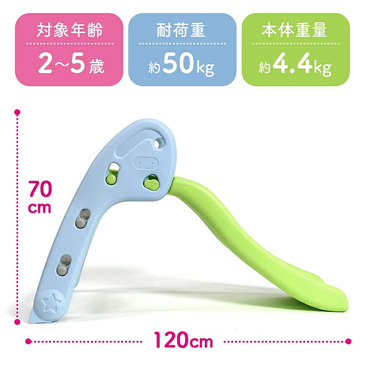素材 PE サイズ 120×70×58cm 折りたたみ時:120×31×58cm 重量:4.4kg 仕様 折りたたみ式 対象年齢:2〜5歳 耐荷重量:約50kg 付属品 説明書 カラー ブルー ピンク ホワイト JANコード ブルー:4573118563638 ピンク:4573118563645 ホワイト:4573118563621 品番 slide001 注意 カラーの見え方につきましては、お客様のモニターなどの設定により、違って見える場合がございます。