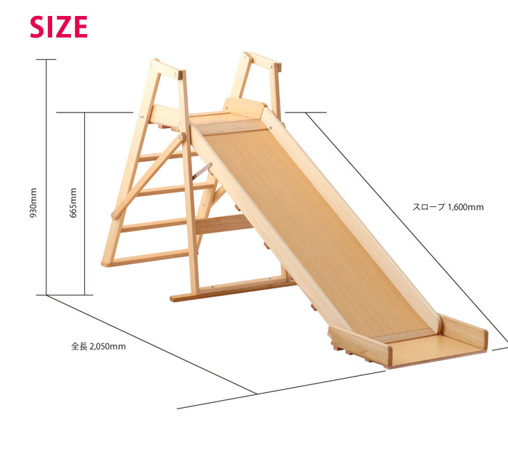 ▼こちらもおすすめ▼ 通常 ジャングルジム 仕様 サイズ 全長2,050×全高930mm スロープ:1,600mm(着地板共) 踊り場高さ:665mm 【スタッフくどぅのおすすめポイント!】 ・日本製すべり台 ・コンパクトに収納できる折りたたみ式 ・SGマーク認定商品 ・ぬくもりを感じる木製 ・安心のフォースター塗料使用 ・室内で楽しく遊べます。