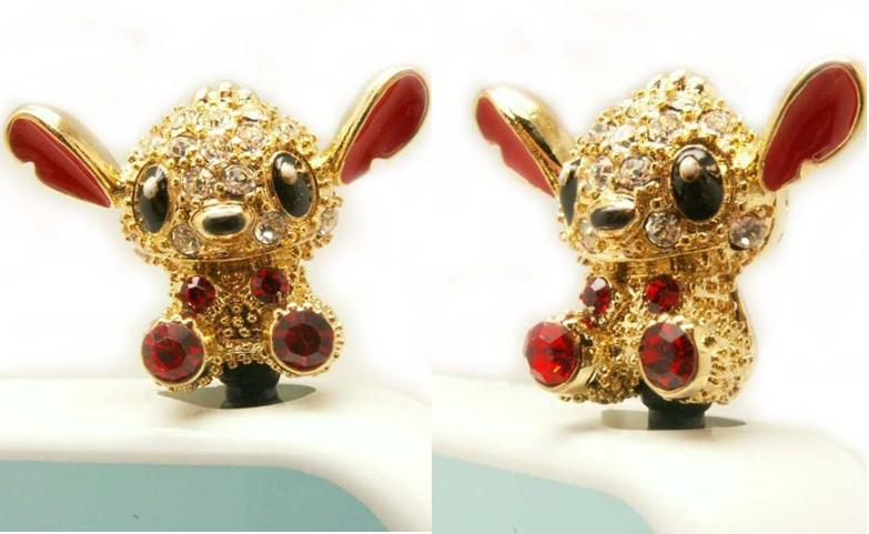 スワロスキーステッチイヤホンジャックアクセサリー(iPhone&スマホ対応)、人気のキャラクタ−ステッチ! きらきら輝いて、ステッチ好きな方にお勧めの一品です。