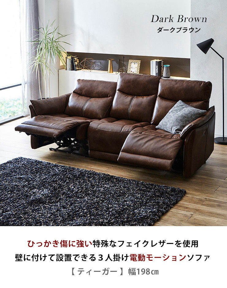 ★ 50%OFF ★3P電動モーションソファ 三人掛け リクライニングソファ ティーガー ダークブラウン ライトブラウン 輸入品 送料無料