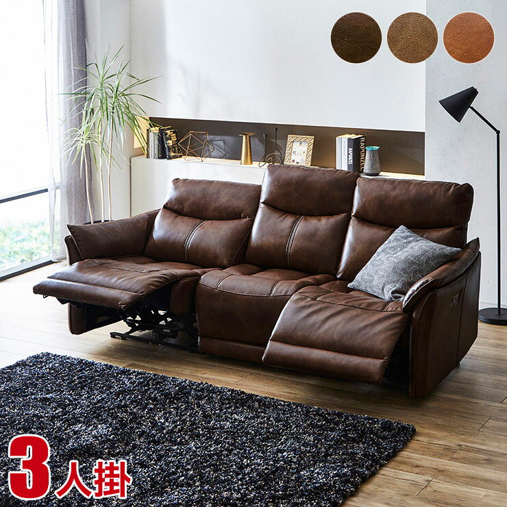 リクライニングソファ 電動 ヴィンテージ風 ソファー 3人掛け 幅195cm 3人用 背面脱着式 角度調節 モーションソファー ブロンズ アンバー 選べる2色 3P ポケットコイルスプリング 新素材 レザーテックス採用 撥水加工 電動OKIN社製モーター採用 モダン おしゃれ 送料無料