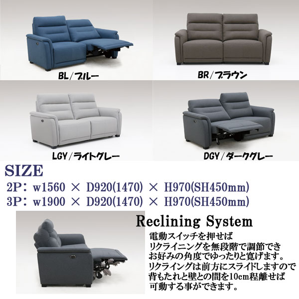 ソファ 3Pソファ 両電動リクライニングソファ 布製 3人掛け 3P モーションソファ オキニ社製モーター