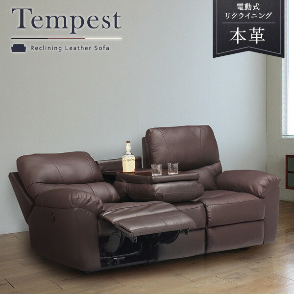 電動リクライニングソファー 【3人掛け ブラウン】 本革/合皮レザー テーブル付き 茶色 【Tempest】テンペスト【玄関渡し】【代引不可】