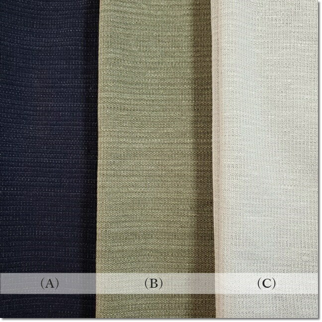 コットンリネンのニット地です トップスなどに向いています 約130cm幅リネン59%/コットン41%※10cmの価格になりますカットした断面が丸まらない扱いやすいさらっとした清涼感のあるニット地です2枚目の3色一緒に撮った画像が一番実物に近いです(A)は黒にも見えますし、濃紺、濃紫にも見える色です(C)もアイボリーと言うよりはもう少しグレーというかベージュにも近い色です※お使いのブラウザの設定により多少色合いが異なって見える場合があります。