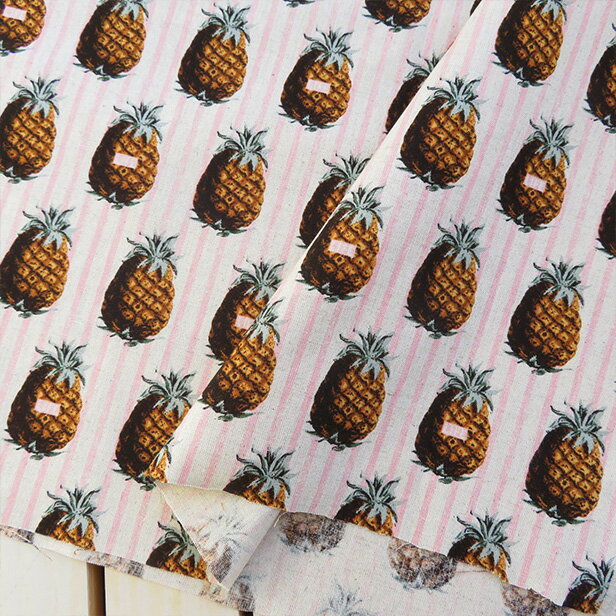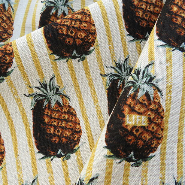 ※5個(50cm)以上からご注文下さい※ 特価 LIFE TEXTILE - flower&fruit - パイナップル柄 綿麻キャンバス生地 日本製 約110cm幅 10cm単位価格【在庫限り】 | コットン リネン プリント キャンバス ライフマガジン アメリカン レトロ ヴィンテージ パイナップル ハンドメイド