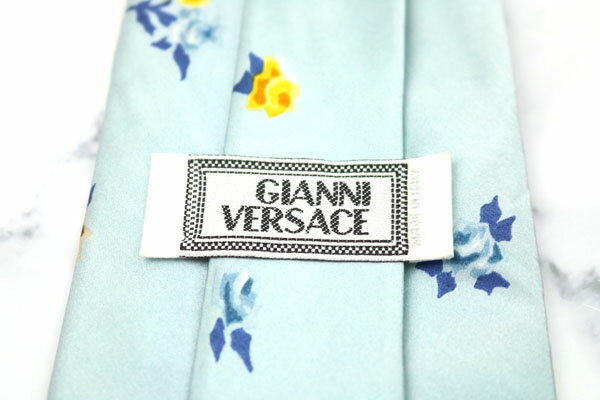 ヴェルサーチ VERSACE 伊製 シルク 花柄 ブルー シルク ブランド ネクタイ 送料無料 【中古】【良品】