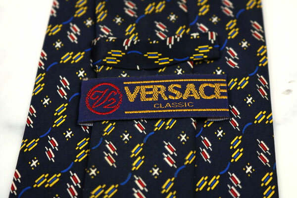 ヴェルサーチ VERSACE V2 シルク 総柄 ネイビー シルク ブランド ネクタイ 送料無料 【中古】【美品】