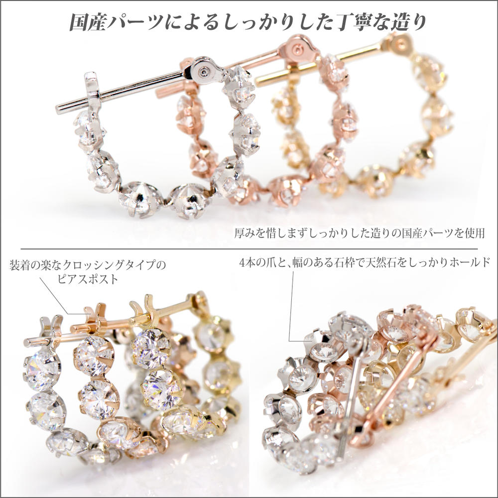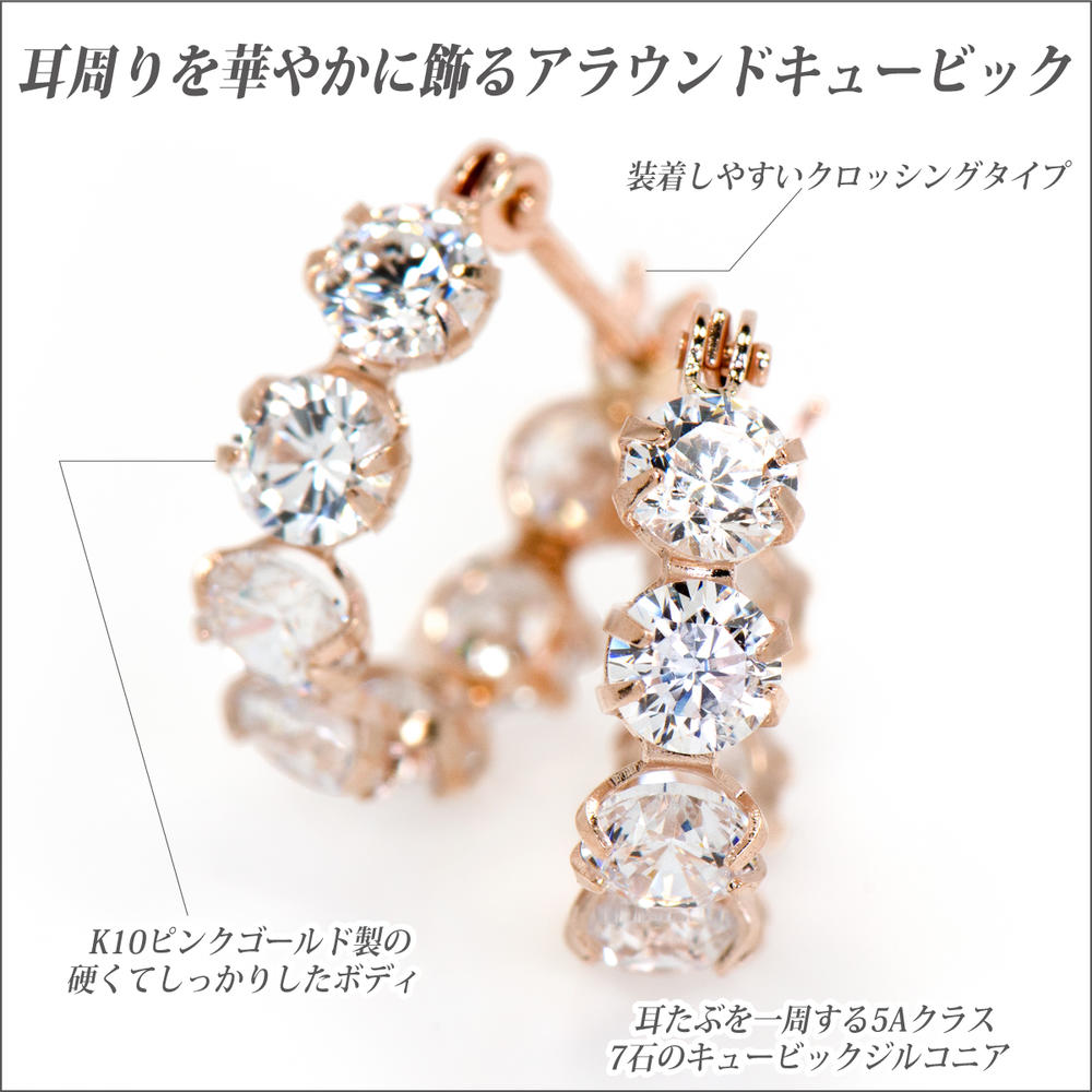 キュービックジルコニア ピアス フープ K10 ピンクゴールド 片耳用 K10ステーションスナップ パイプ ペア 5A シンプル fourm クリスマス 母の日 レディース メンズ 男性 女性 ラッピング 包装 袋 誕生日 プレゼント ケース 箱 華奢 可愛い おしゃれ 手