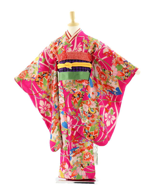 【レンタル】 (七五三)7才女子 ピンク天使のハーモニー(聖子) 七五三 7才 着物 四つ身 四ツ身 7歳 七歳 七才 女 女児 女の子 子供 ジュニア 着物 着物セット フルセット 結婚式 ひな祭り 雛祭り 正月 初詣 レトロ モダン 古典 アンティーク