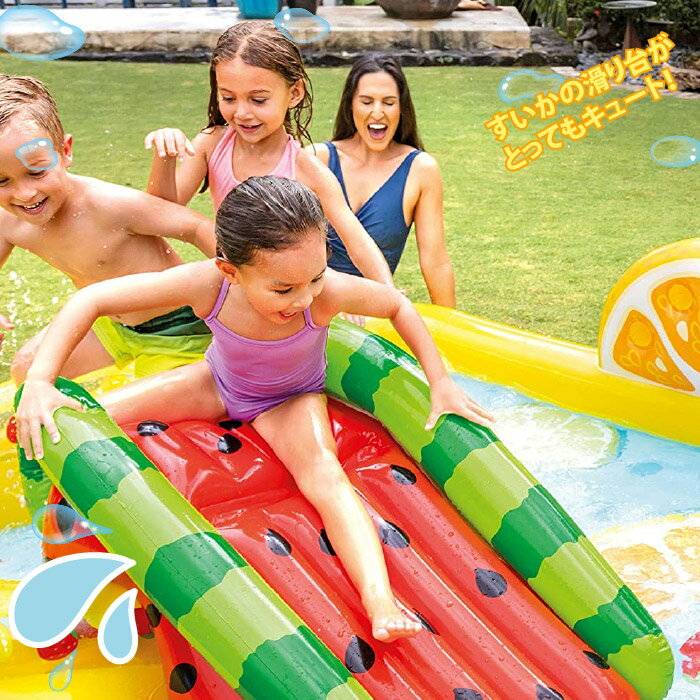 キッズプール すべり台 【ファン フルーティー プレイセンター】 滑り台 シャワー送料無料 すべり台付プール INTEX インテックス ビニールプール 子供用【244cm】かわいい 浮き輪 家庭用プール スライダー