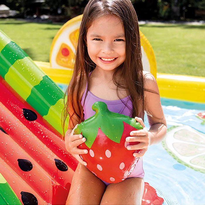 他のプール用品はこちら→ 商品名 INTEX ファン フルーティ プレイセンター 内容 ・本体 ・ボール6個 ・修理用パッチ1枚 素材 PVC(ポリ塩化ビニール) 水送料 プール高さ約20cmの位置の場合 約493L(100%水容量として) 膨らましたサイズ 約244cm × 191cm × 91cm 対象年齢 2歳頃から 滑り台最大容量 50 kg 注意 フルーツをテーマにした二つの機能を一つにしたプールに飛び込んで何時間も水遊びを楽しみましょう! 二倍楽しむための二つのプールエリア 滑り台で大きなプールにスプラッシュ プールに組み込まれた噴水をホースと接続してください。