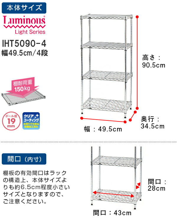 【6月中旬入荷予定】【キャスタープレゼント】ルミナス スチールラック 幅50 奥行35 スチール メタル ラック 棚 4段 業務用 収納ラック スチールシェルフ メタルシェルフ オープンラック キッチン収納棚 ルミナス ライト IHT5090-4 (ST5035/PHT-0090SL)