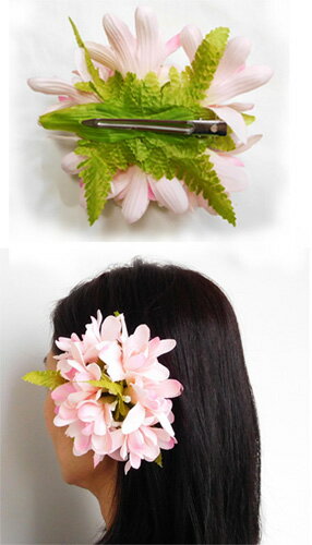 フラダンス衣装 髪飾り 花飾り ローズ ヘアクリップ レイ イベント フラ CL-75 アイランドチューブローズブロッサムファーンクリップ ベアリーピンク