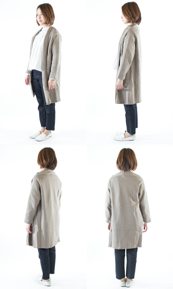 身幅はゆったりとしたロング丈で、ボディラインを拾わず リラックスした着用感です。