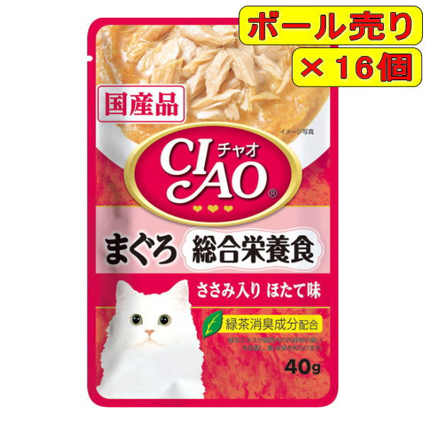 【ボール売り】いなば チャオパウチ 総合栄養食 まぐろ ささみ入り ほたて味 40g×16個