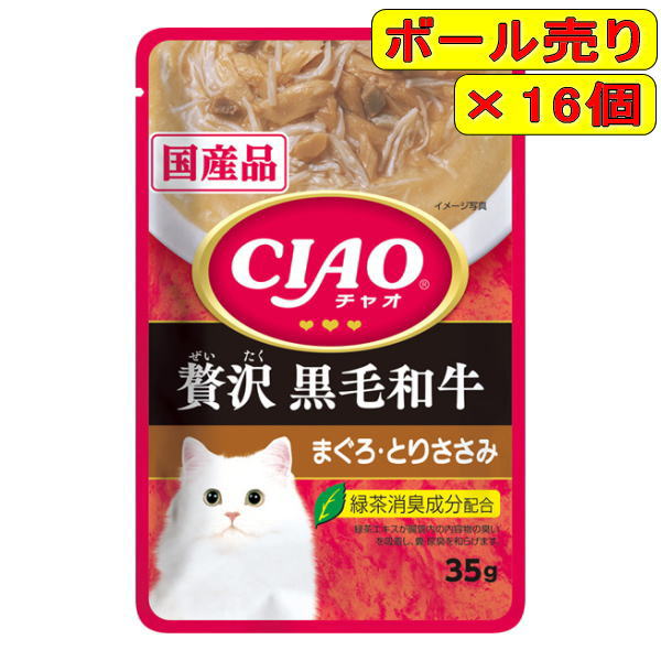 【ボール売り】いなば チャオパウチ 贅沢 黒毛和牛 まぐろ・とりささみ 35g×16個